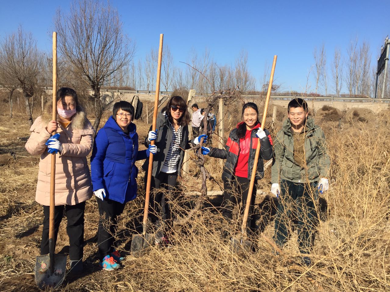 中午11:30左右,一大片葡萄根挖完了,汗水浸满额头,但在大家的脸上洋溢着的是奉献后的愉悦,以及劳动带来的满足。